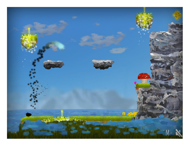 The game was heavily inspired by Jonathan Blows’ masterpiece, Braid. We took care to make sure each puzzle could be seen in full at any one time. This meant fitting all the elements onto one screen which ended up being somewhat of a challenge! The end result meant one could theoretically solve each level just by looking at a screenshot. Can you work out how to solve the below?